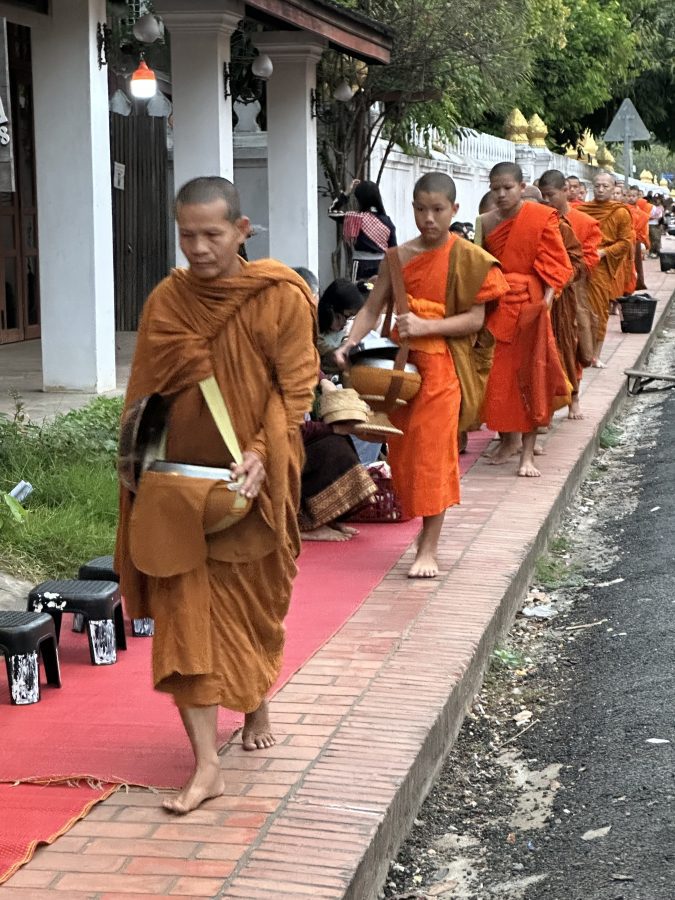 Without a doubt, the highlight of my time in Luang Prabang was waking up early to participate in the daily Alms Giving Ceremony. Locals and tourists line the Main Street in the old part of the city to hand out food to the Buddhist monks as they seek out their daily meal. The locals have made it easy for tourists to participate, providing us with the proper attire and food to hand out.