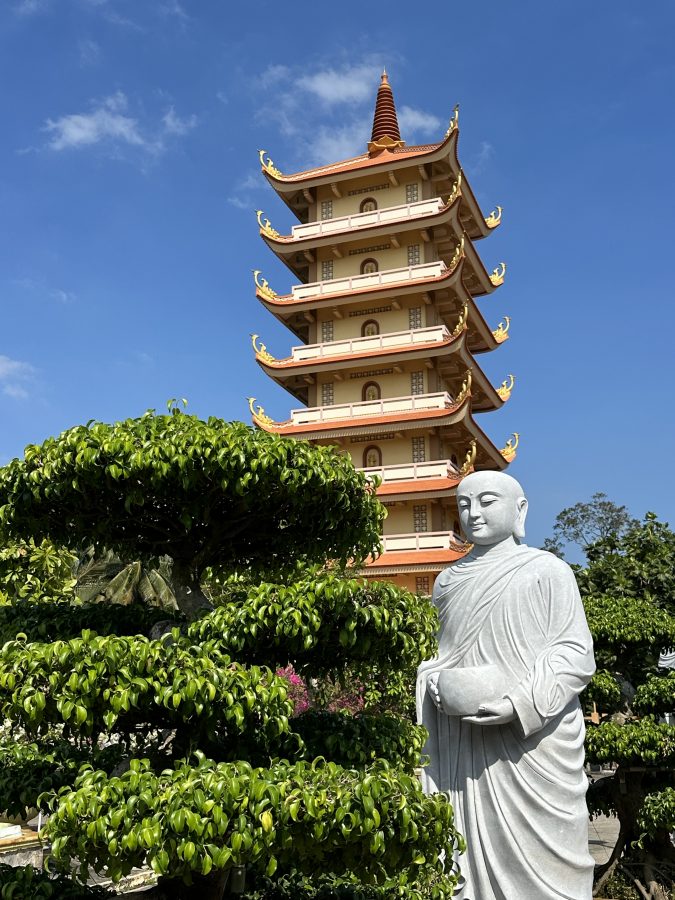 We only spent 2 days and 1 night in the Mekong Delta – but boy did we ever pack in the activity (or I should say the tour company packed it in for us). We spent time at the Vinh Trang Pagoda, biked through small villages, got rowed around local waterways, toured fruit orchards (and of course enjoyed samples) and learned how to make everything from coconut candy, puffed rice, and rice paper. Turns out I also have a bit of a knack for making rice noodles – I nailed perfect execution on my first attempt making them. So I may have a fall-back career!
